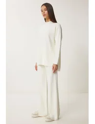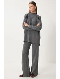 100% acrylic; a knitwear set consisting of a high-neck, raglan-sleeved sweater with side slits and elastic-waisted trousers; sweater length: 72 cm sleeve length: 62 cm trouser length: 106 cm; colors may vary in studio shots due to light differences.