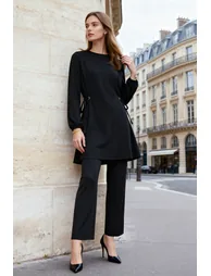 Dark Khaki Eyelet Tie Detail Aerobin Tunic-Pants Set
