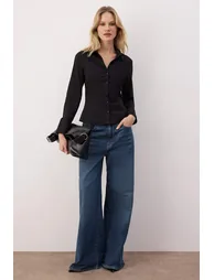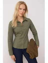 Model Information: Model Measurements: Height: 180cm(5'11'') Chest 81cm(31In) Waist: 58cm(22In) Hip: 87cm(34in);The item on the model is size S/36/8.; ;Material Component: 85% Cotton, 15% Elastane ;Fabric Type: Woven ;Model Front Length: 60.0 cm ;For longer use of your product and proper care of your product, please follow the washing instructions below. ;Colors may vary due to light differences in studio shots.