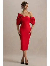 جريء ولا يُنسى، تم تصميم "لوسيل" لجذب الأنظار. هذا الفستان الميدي مصنوع من قماش كريب مطاطي فاخر بلون خمري جريء ومزود بأكمام ساتان رقيقة تضفي لمسة من الأناقة.