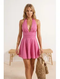 فستان قصير على شكل حرف A بياقة هالتر