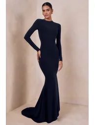 The styles that graced the red carpets this award season inspired our latest maxi dress, One Step Ahead. Channeling classic Hollywood glamour, this black gown features a close round neckline that buttons elegantly from behind. The long-sleeved showstopper also boasts a floor-length skirt with a fishtail flair, what better option for your next formal occasion? Features