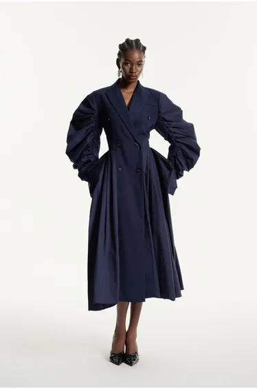 Eerika Ruch Deconstruct Balloon Sleeve Coat This architectural outerwear piece reimagines classic tailoring through strategic deconstruction. The signature balloon sleeves create dramatic volume and movement, while the deconstructed silhouette reveals intentional seaming and layered construction details. Crafted with precision engineering, the coat balances avant-garde design with wearable sophistication. The structured shoulders and flowing sleeve proportions deliver both visual impact and functional comfort. An investment piece for those who appreciate innovative design and elevated everyday wear.