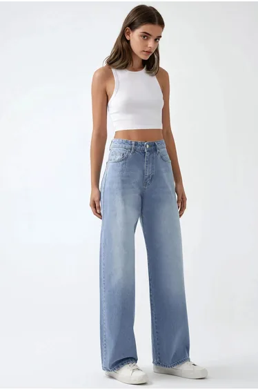 يحتوي البنطلون على جيوب عملية تضيف لمسة من العملية إلى التصميم، مما يجعله مناسبًا للاستخدام اليومي أو المناسبات الخاصة. التصميم الواسع للأرجل يتيح لك ارتداءه مع مختلف أنواع الأحذية، سواء كانت رياضية أو كلاسيكية.