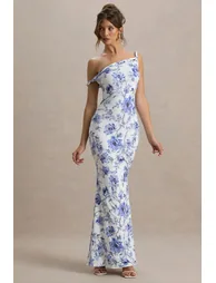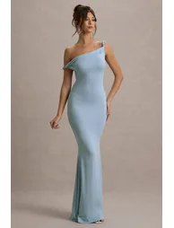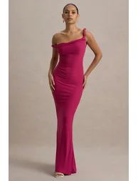 سمات - جيرسي مطاطي ممتاز - تناسب الجسم - خط عنق ملتوي غير متماثل - بلا أكمام - الطول الأقصى