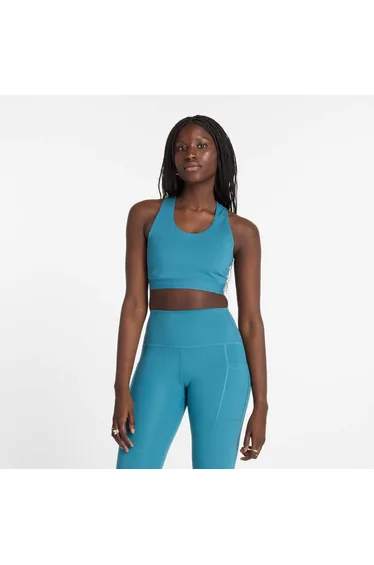 Women's New Balance Sleek Medium Support Pocket Sports Bra in Blue